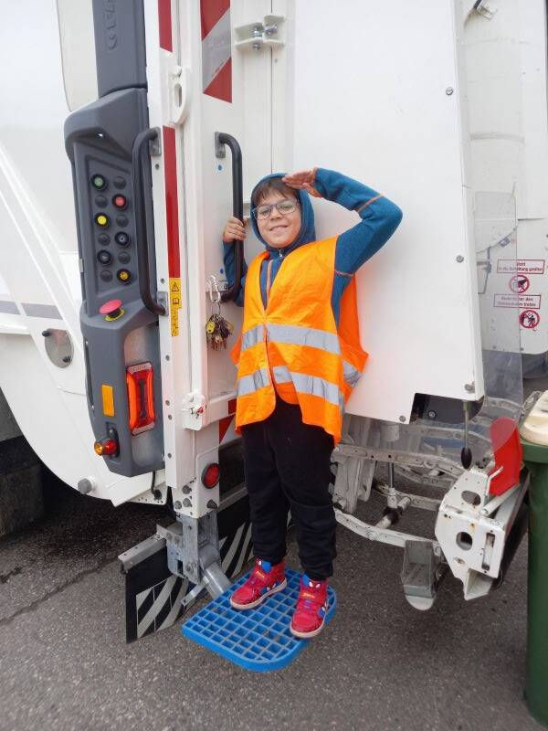 Auch Hintergrundinformationen, was mit den getrennten Stoffen passiert, wo sie hingebracht werden und was daraus wieder entstehen kann, haben wir bekommen. Natürlich wurden die Informationen durch viel Spaß gefestigt – so durfte jeder einmal ein „echtes Müllauto“ erforschen. Wir werden nun das aufgefrischte und neue Wissen sicher richtig in der Schule und zu Hause umsetzen.
