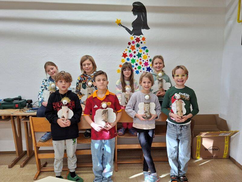 In den letzten Wochen haben die Kinder der Schule im Technik & Design Unterricht mit besonders viel Eifer gearbeitet. Es ging ja darum, wunderschöne Weihnachtsgeschenke zu gestalten. Dabei entstanden bei den Jüngsten glitzernde Engel mit Perlenkleidern, die mit viel Energie aufgefädelt wurden; bei den Großen Holzengel mit Klangspiel, die selbstständig mit der Laubsäge ausgesägt und dann bemalt und gestaltet wurden und – wie auf den Fotos zu sehen – Holzscheit-Engel mit selbst gegipsten Flügeln. Wir wünschen frohe Weihnachten und ein gesundes Neues Jahr 2026!