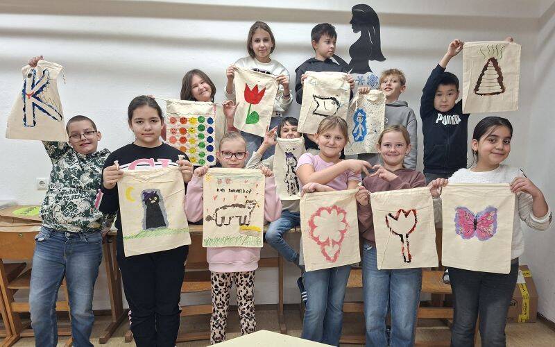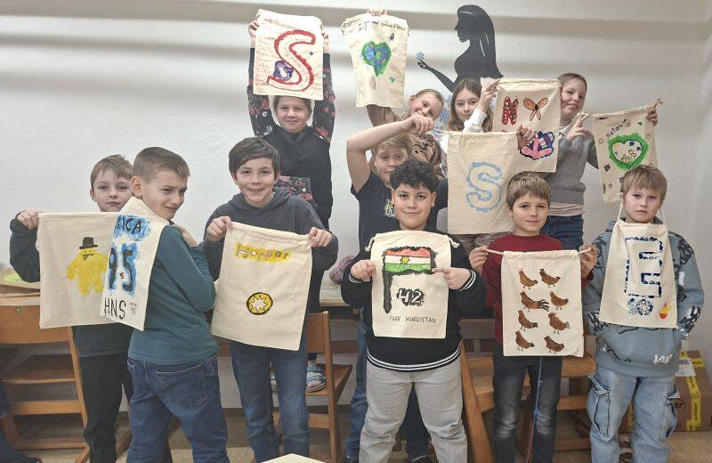Die Kinder der 4b haben nach eigenen Entwürfen Turnsackerln bedruckt. Es gab die Möglichkeit, sich einen Kartoffelstempel zu fertigen und mehrere kleine, aber gleiche Motive zu stempeln. Oder ein großes Motiv zu entwerfen, mit Korkstempeln rundherum zu bedrucken und auf diese Art und Weise ein Negativbild des Motivs aufs Turnsackerl zu bringen. Natürlich wurden die Druckwerke danach noch kunstvoll verziert ... und sie können sich sehen lassen!!